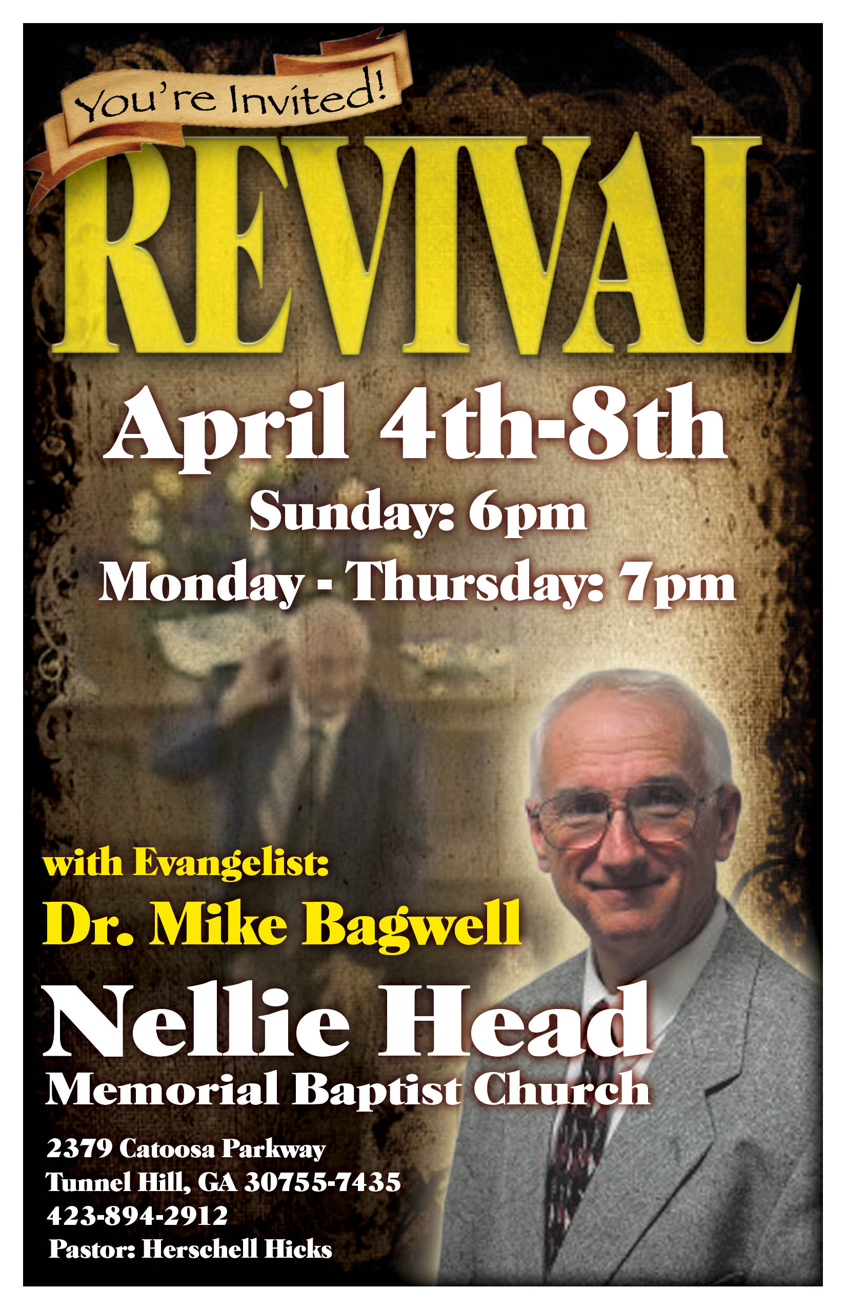 Bagwell Revival Flyers Previous item Spring 3 Revival Next item Young woman with raised... March 25, 2010 by admin 193 No image description ...